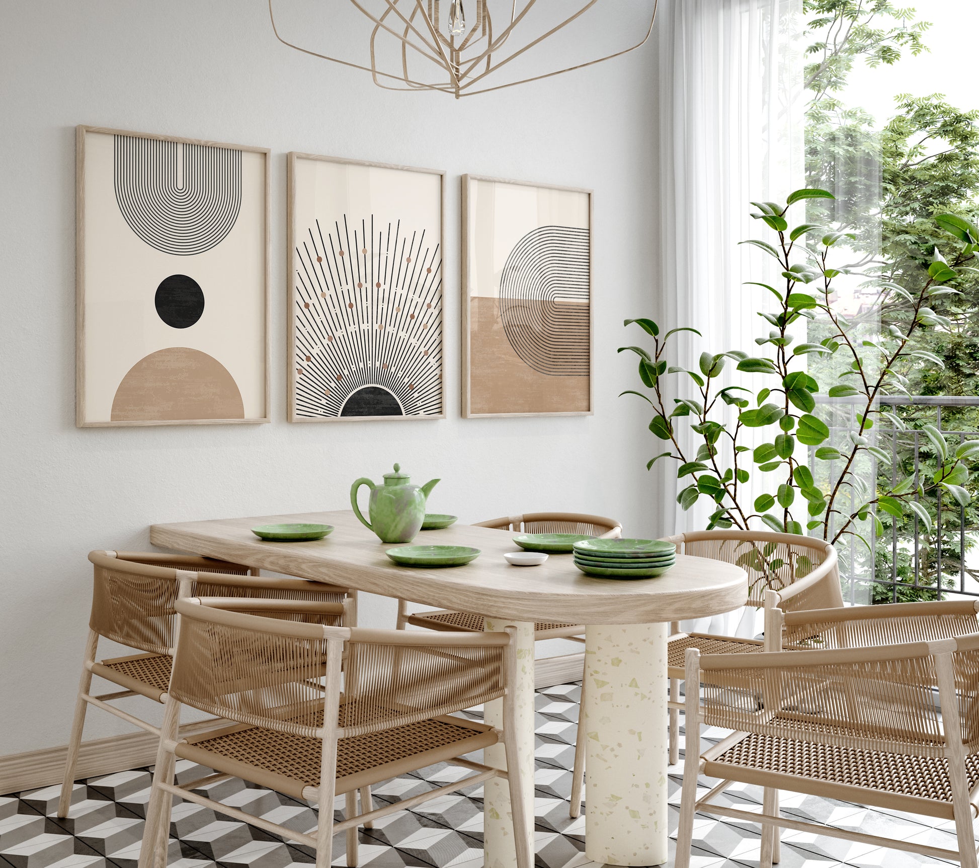 Boho Abstract Wall Art Set of 3 Posters, Earth Tone Bohemian Home Decor, Digital Download Modern Prints